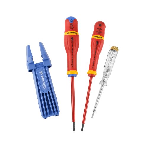 Le CPC.SPG est un Coffret de tournevis FACOM. Composition essentielle pour monter et démonter une prise de courant dotée d'1 tournevis à fente isolé 1000 volts 3